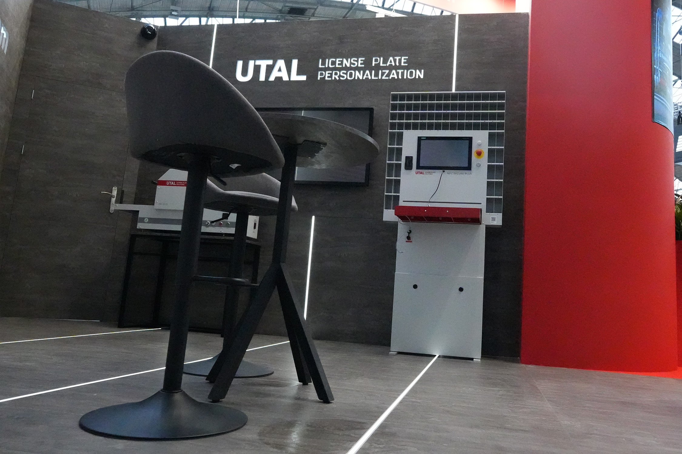 The space was divided into four functional zones that showcased different aspects of the company’s activities. One of them served as a demonstration area where visitors could see solutions related to license plate personalization and production equipment. This zone also featured a characteristic flex screen displaying dynamic visual content.