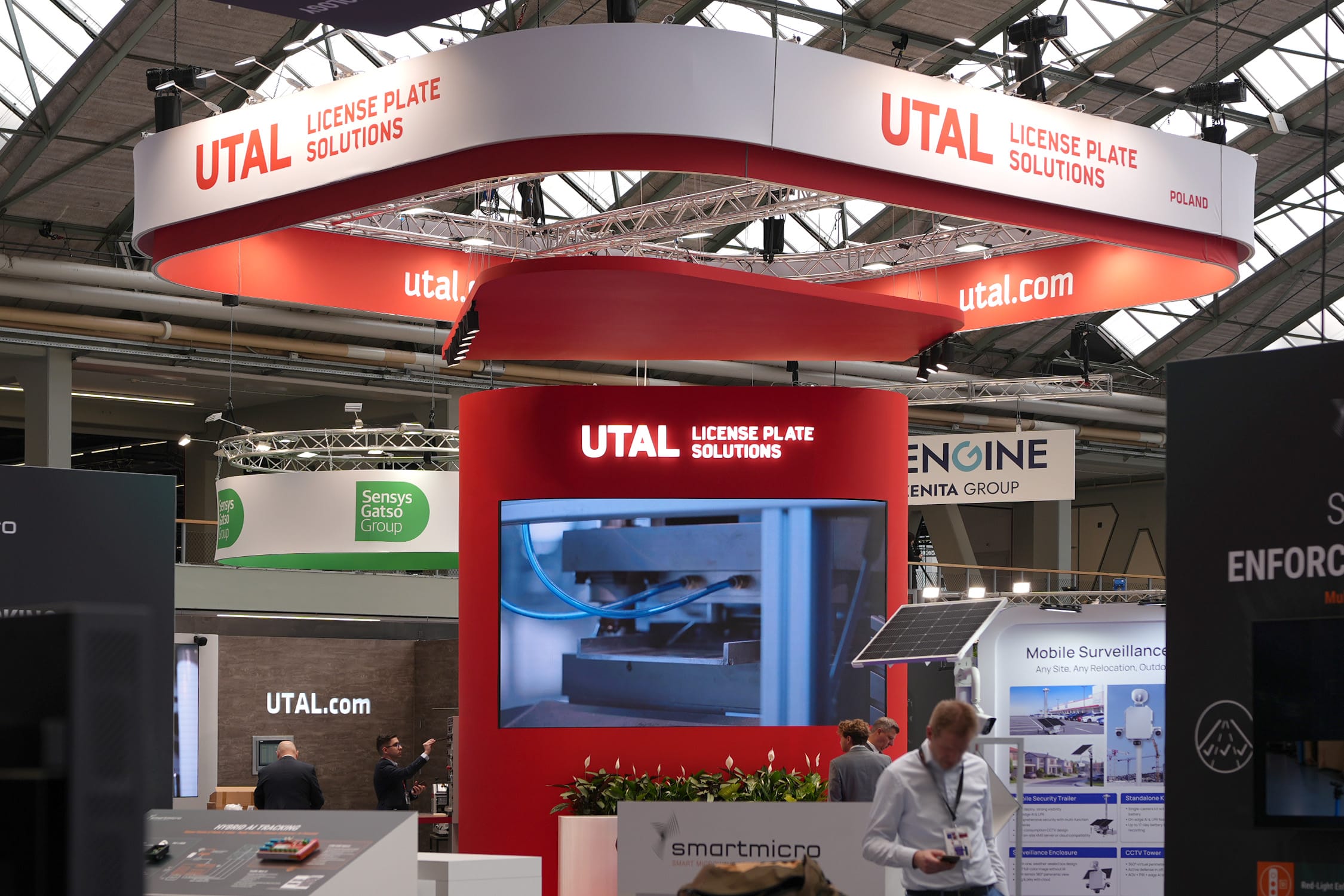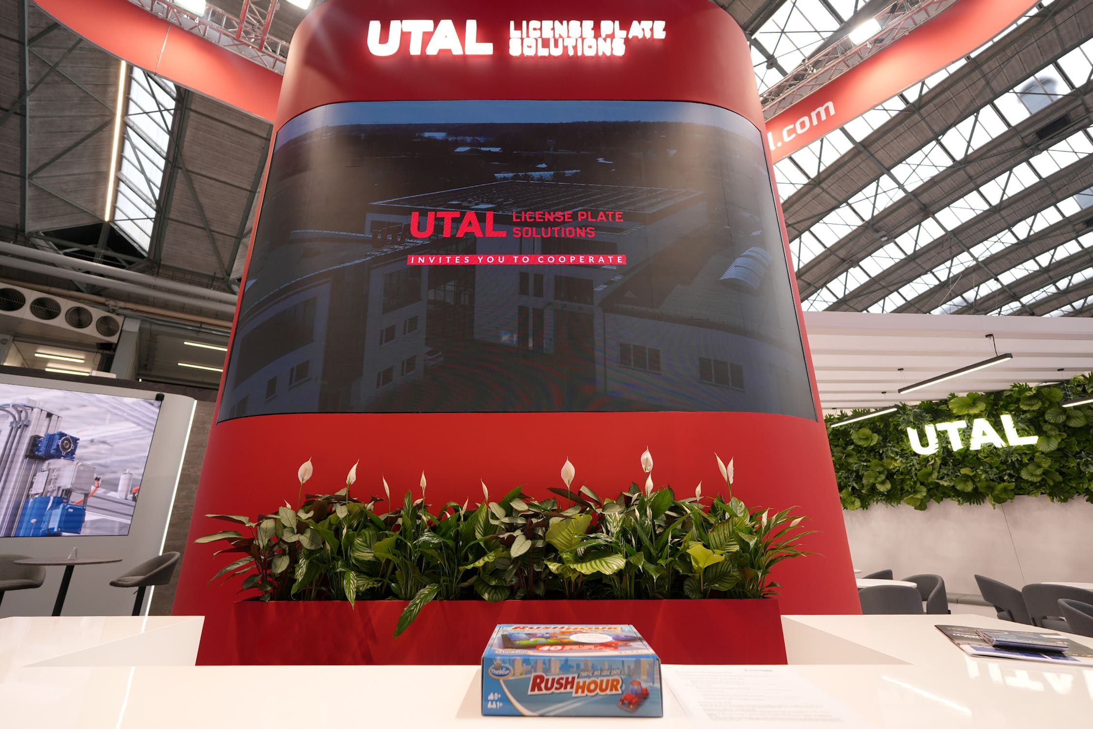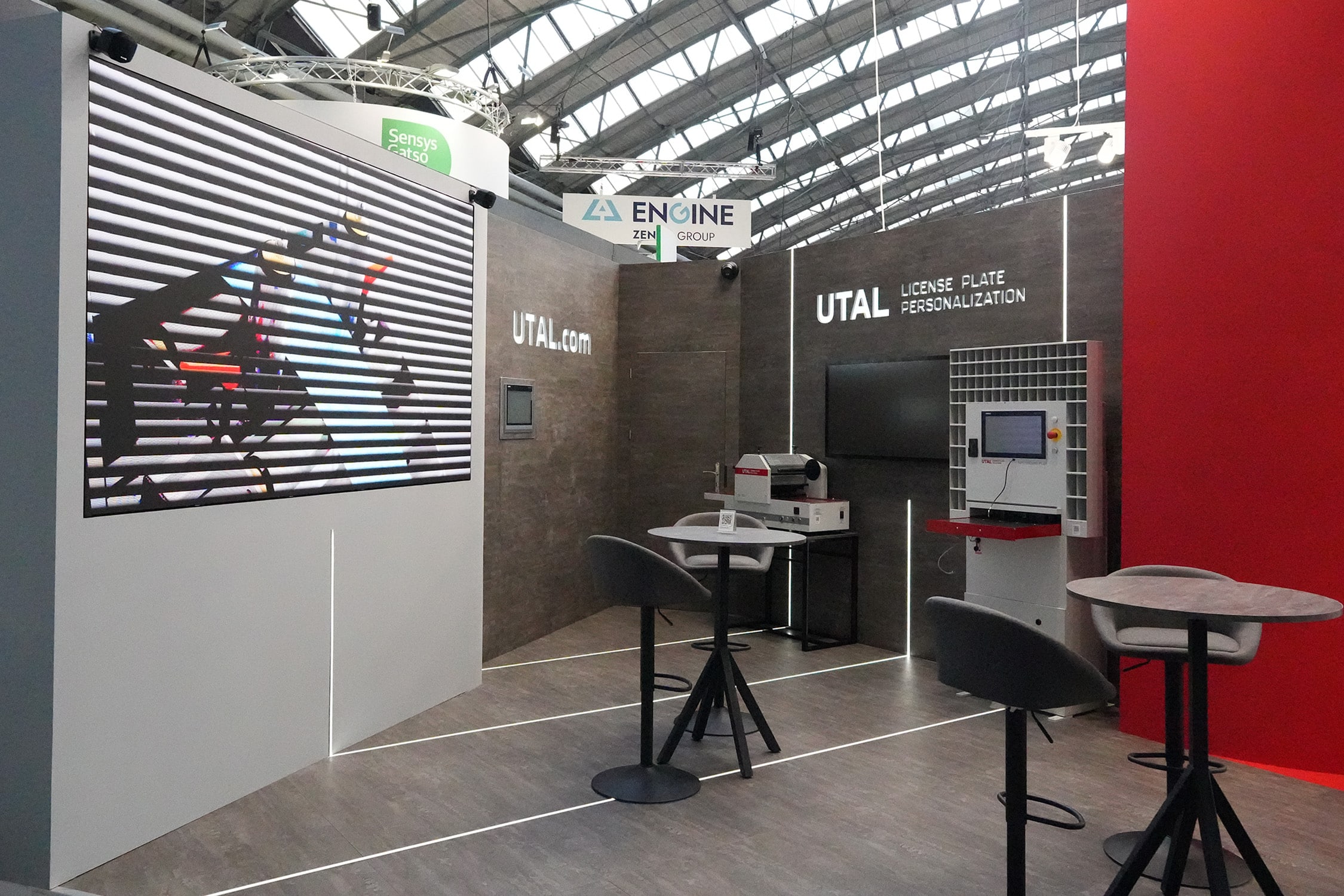 Stoisko targowe dla firmy UTAL License Plate Solutions zaprezentowane podczas targów Intertraffic Amsterdam zostało zaprojektowane na powierzchni 100 m². Wyróżniało się nowoczesną, otwartą architekturą. Centralnym elementem przestrzeni była wysoka, czerwona konstrukcja z dużym ekranem prezentacyjnym, która przyciągała uwagę odwiedzających już z dalszej części hali. Nad stoiskiem zawieszono charakterystyczną konstrukcję sufitową w formie podwieszanej ramy z logotypem firmy, dzięki czemu marka była dobrze widoczna z różnych stron hali.